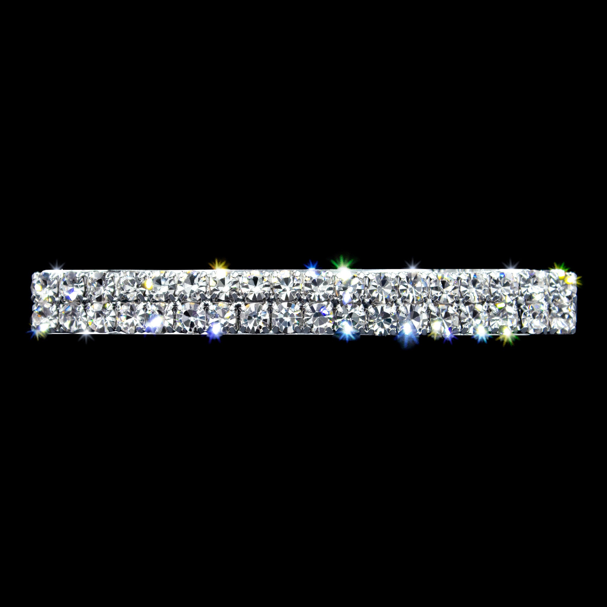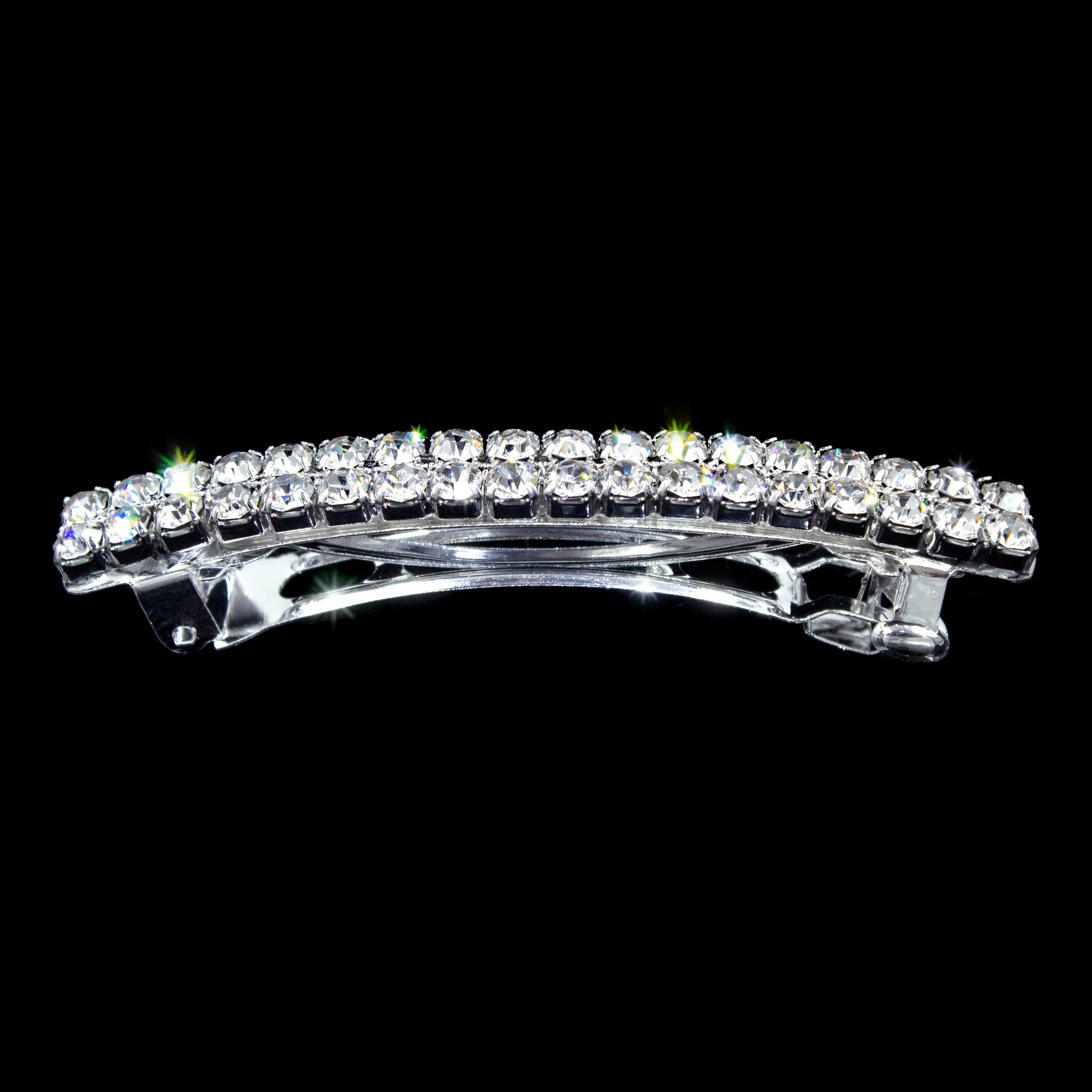 #11076S - 2 Row Rhinestone Barrette - Silver Plated