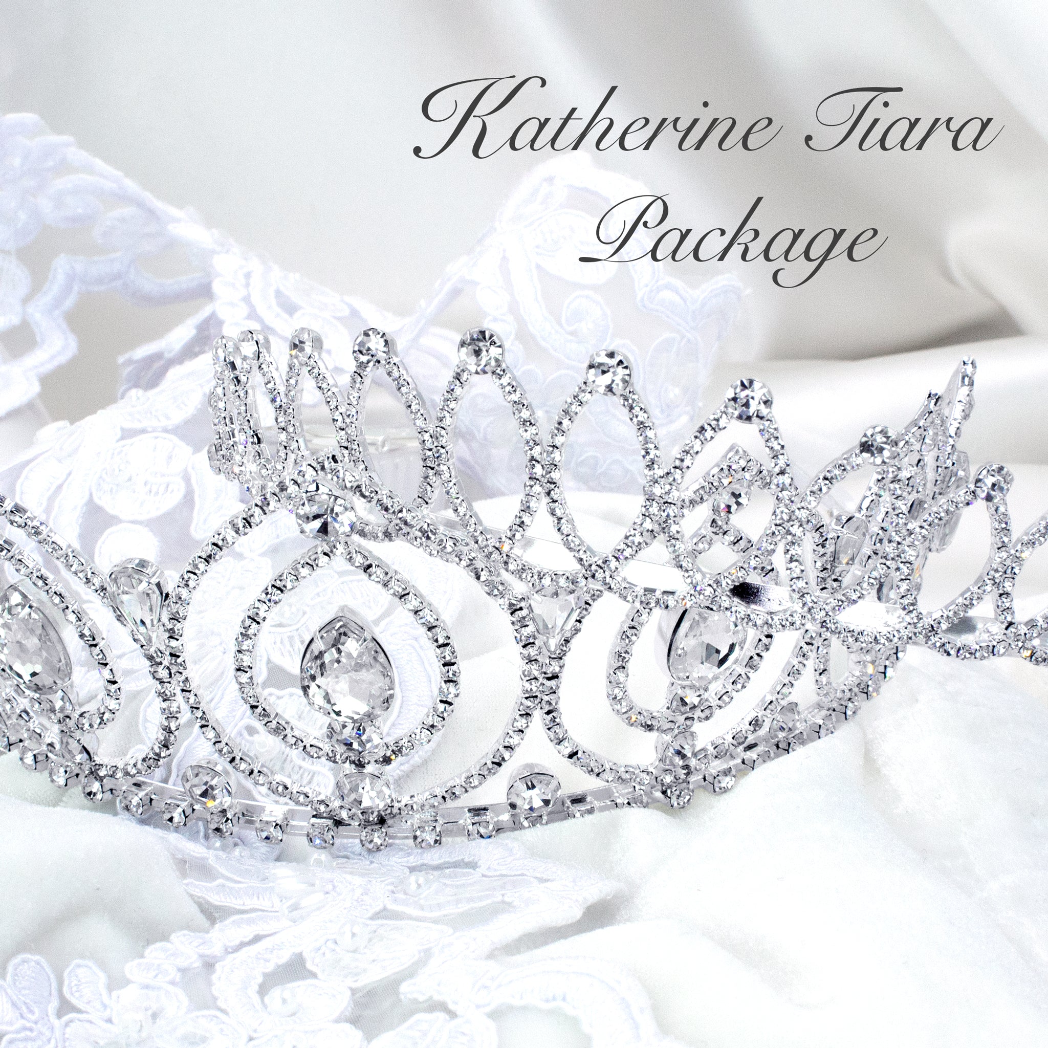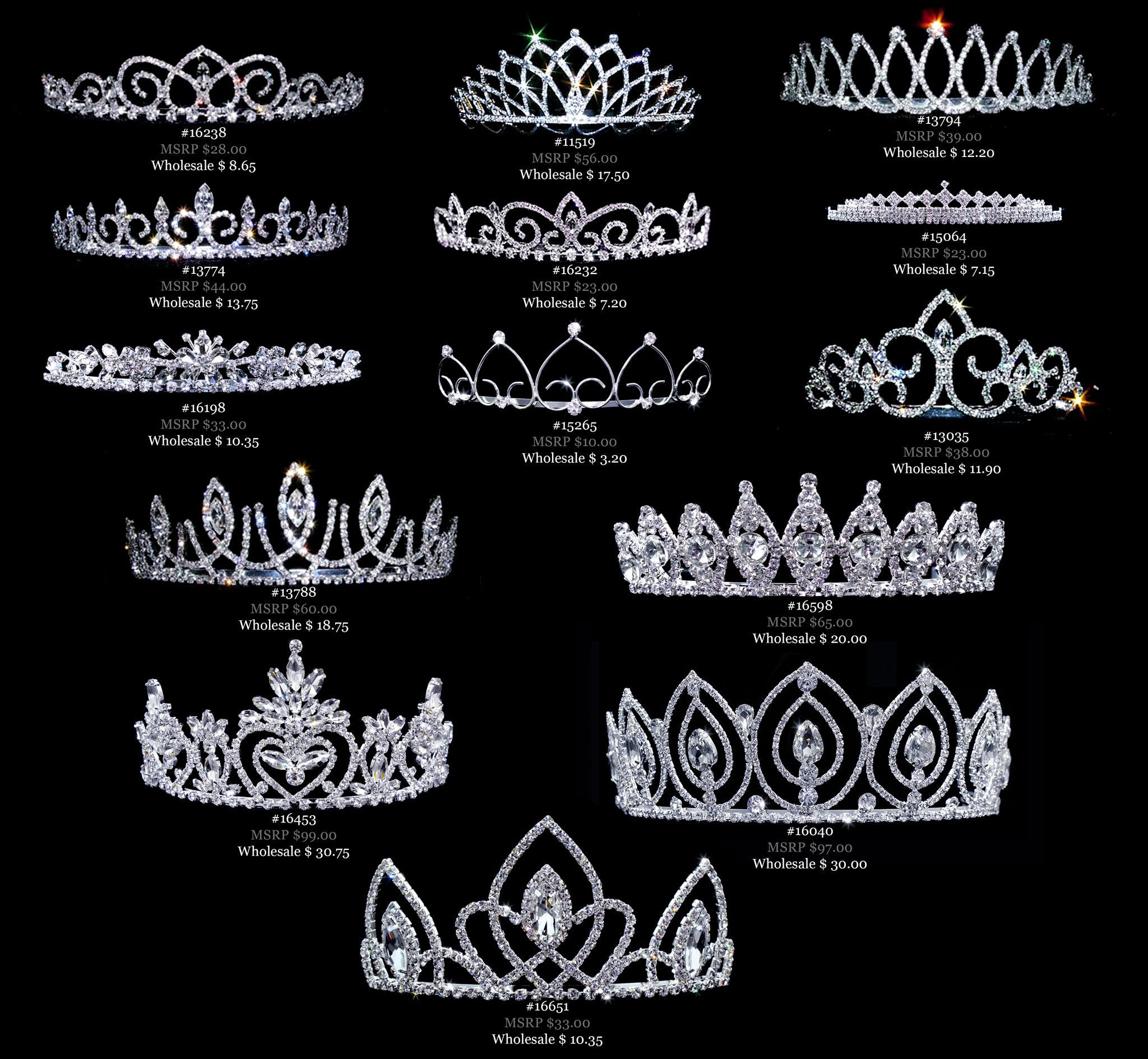 The Katherine Tiara package gives you 1 piece each of good selling midsize tiaras taking the guesswork out.  There will be a total of 14 pieces. If we run out of a style, we will include a comparable style.