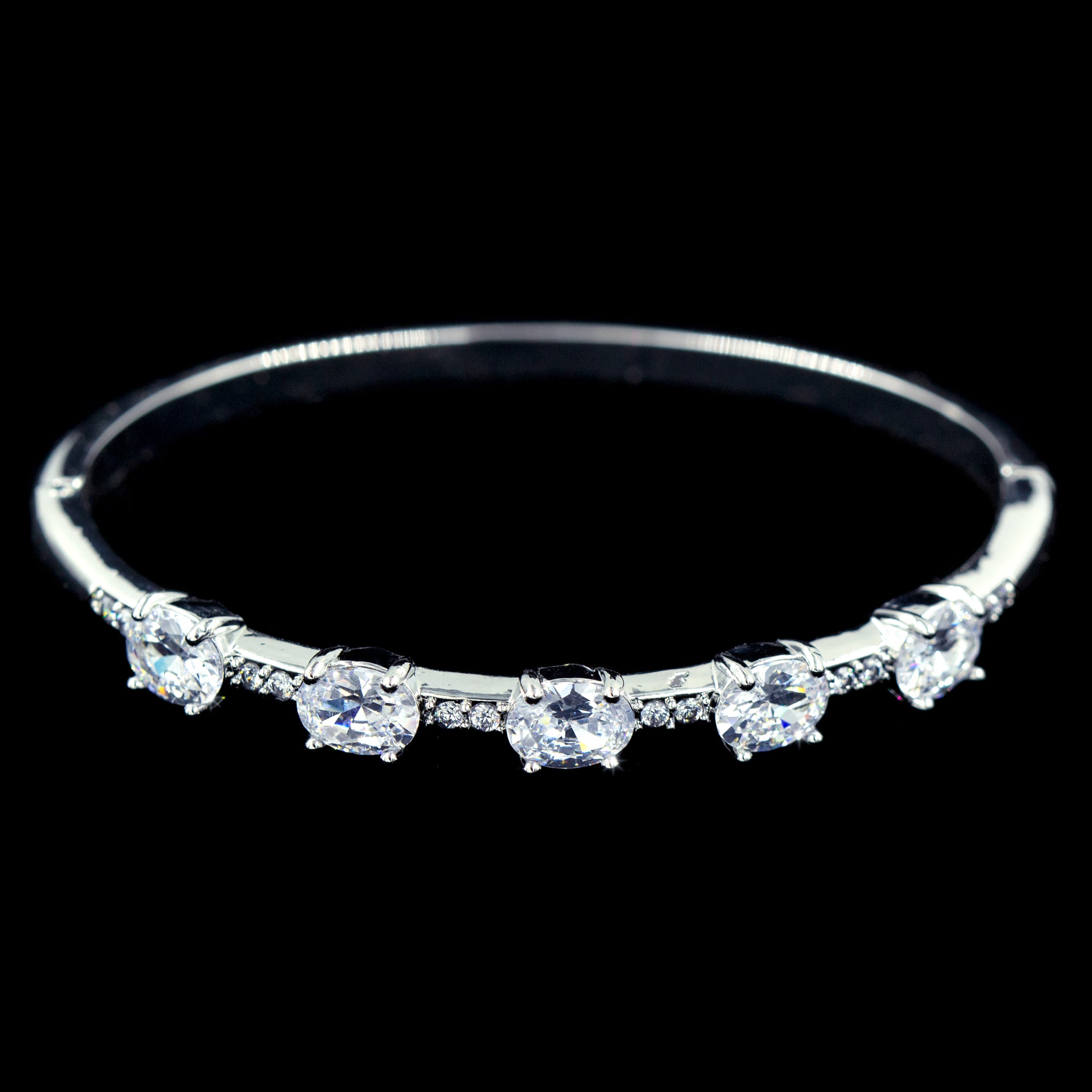 The circumference is 7.25" and the stones are cubic zirconia. There is a side clasp. Plated in Silver. Each bracelet comes in a polybag.